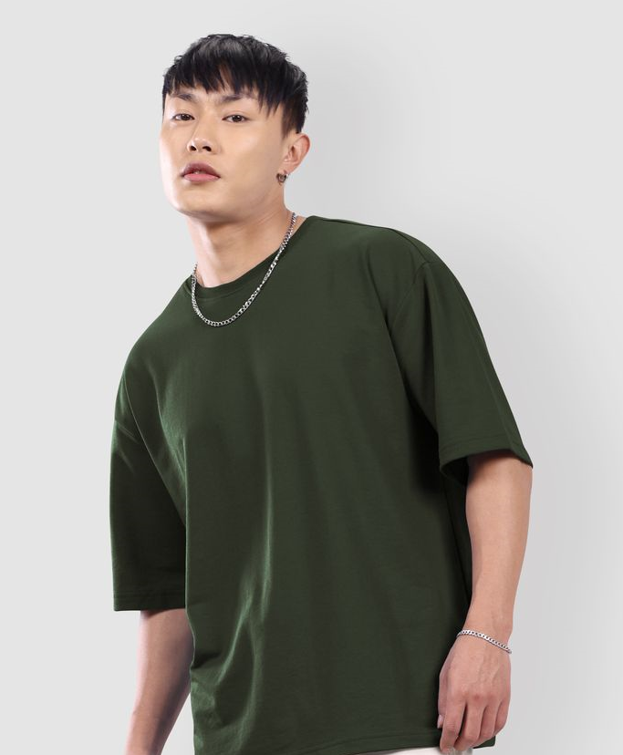 Men Drop Shoulder Oversized T-Shirt (Olive Green)